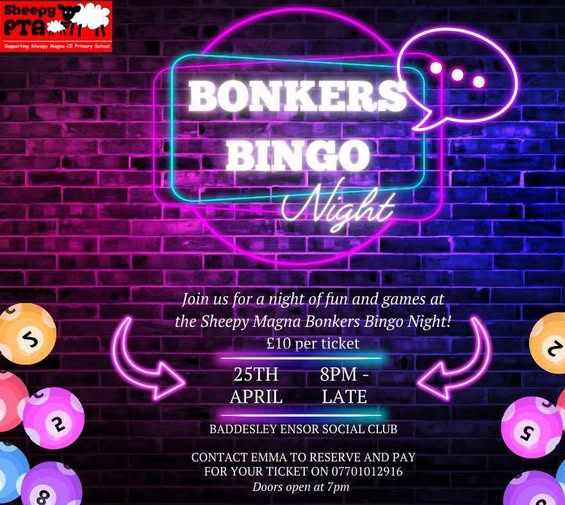 Sheepy Magna School PTA have arranged a Bonkers Bingo Night to raise funds for their school!